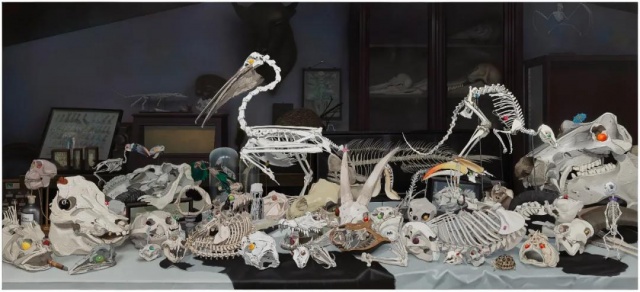 一切变得更易读,却又更难以读取。然而,与其将静物系列视为一场断崖式的跃进,不如将其看作是陈飞多幕剧创作的第二幕。在这些暗礁状的新作中,人们依然可以清晰辨认出艺术家特有的黑色幽默与分镜风格。