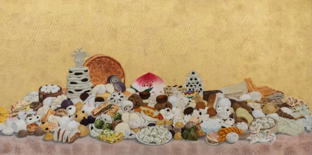 如何在繁杂的文化浪潮中破除迷信而立身是这位80后艺术家创作生涯中的一柄悬剑。这批具有十七世纪荷兰静物画表征的新作并非是用以保存稀世珍藏的幻象文本或是表彰私人财富的桌边盛景,更不是暗合劝世教诲的意象画作。陈飞的静物以更为开阔的视角,将对百姓生活的人文关怀裹挟在寻常事物的平实记述里,网住了“投身于世的肉身经验”。在描绘上,艺术家则通过对新年画的挪用,借“‘阳春白雪’走出象牙塔”的概念与批量生产中“精确的流失”,以粗疏对抗矫饰、平等矫正偏颇,破除了对西方古典美术的顶礼膜拜,完成了他简洁又丰腴的创作表达。
